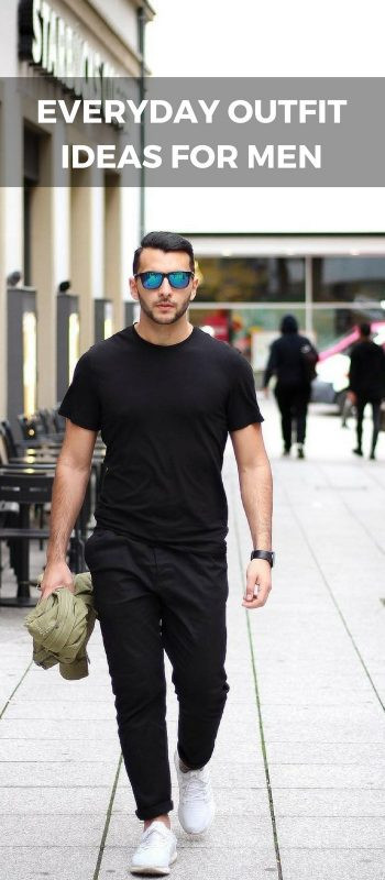 Áo phông đen và quần kaki đen mang đến vẻ ngoài mạnh mẽ, lịch lãm. Đây là một bộ đồ linh hoạt, dễ dàng phối hợp với nhiều loại phụ kiện khác nhau.
