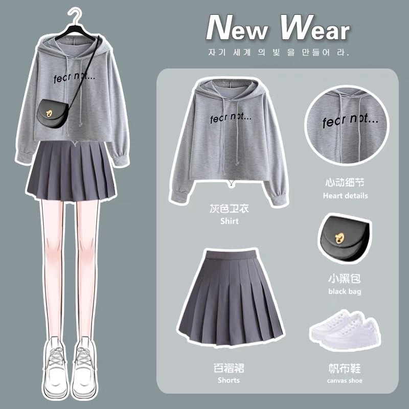 Áo Hoodie Croptop Kết Hợp Chân Váy