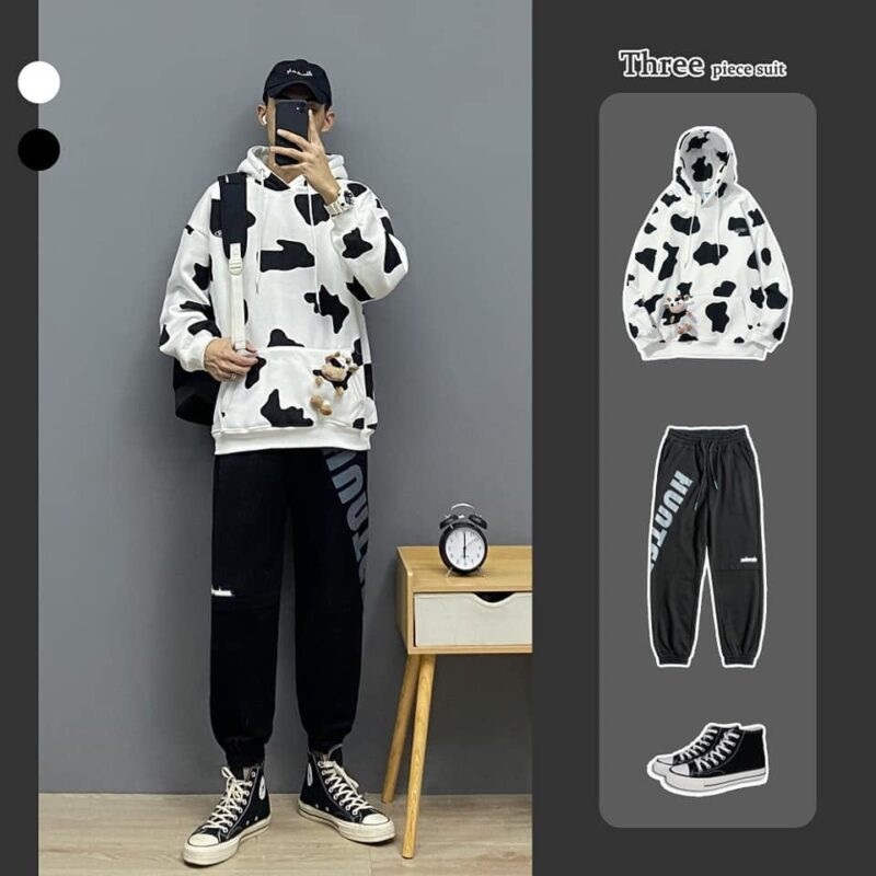 Áo Hoodie Họa Tiết Đi Kèm Với Quần Jogger Đen